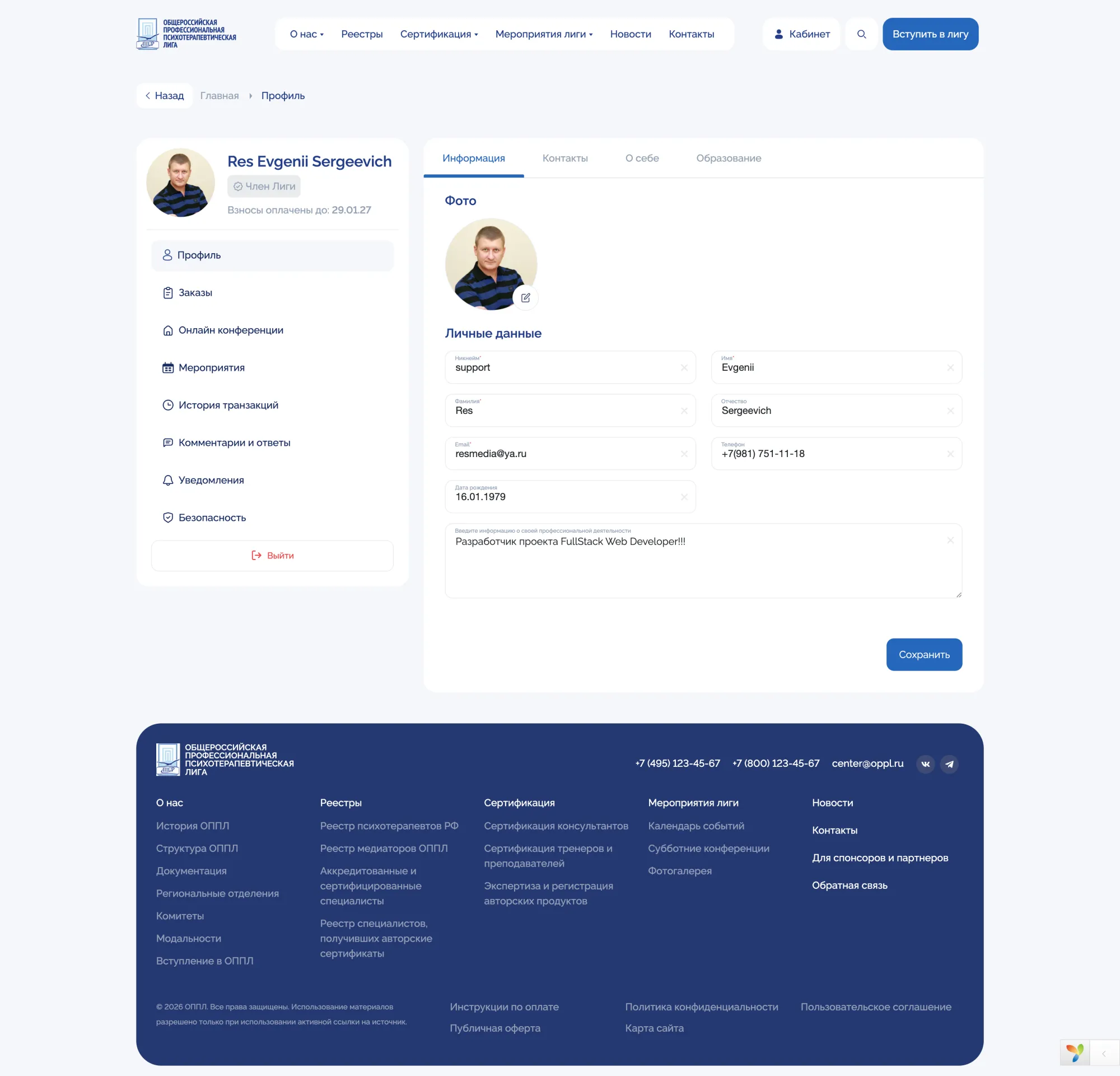 Within 60 days, a large-scale web platform was designed, developed, and brought to a fully working state for a nationwide professional organization (OPPL). The project was delivered entirely by a single developer, covering everything from system architecture and backend logic to user-facing interfaces and administrative tools.