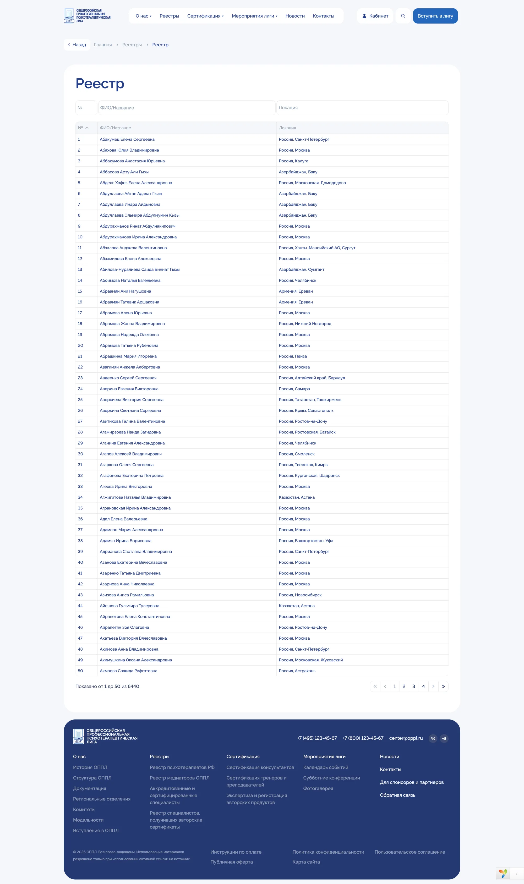 Individual public pages for each registry entry.